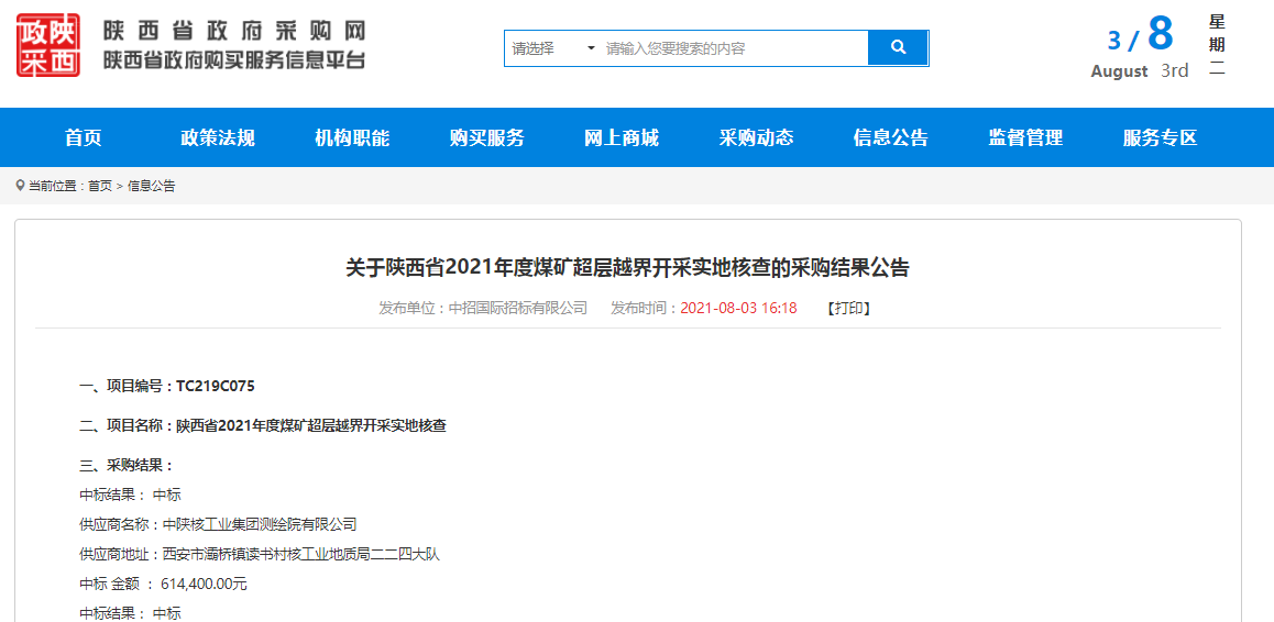 • 2024-05-30喜訊!公司成功中標(biāo) “陜西省2024年度煤礦超層越界開采實地核查采購項目”合同包2